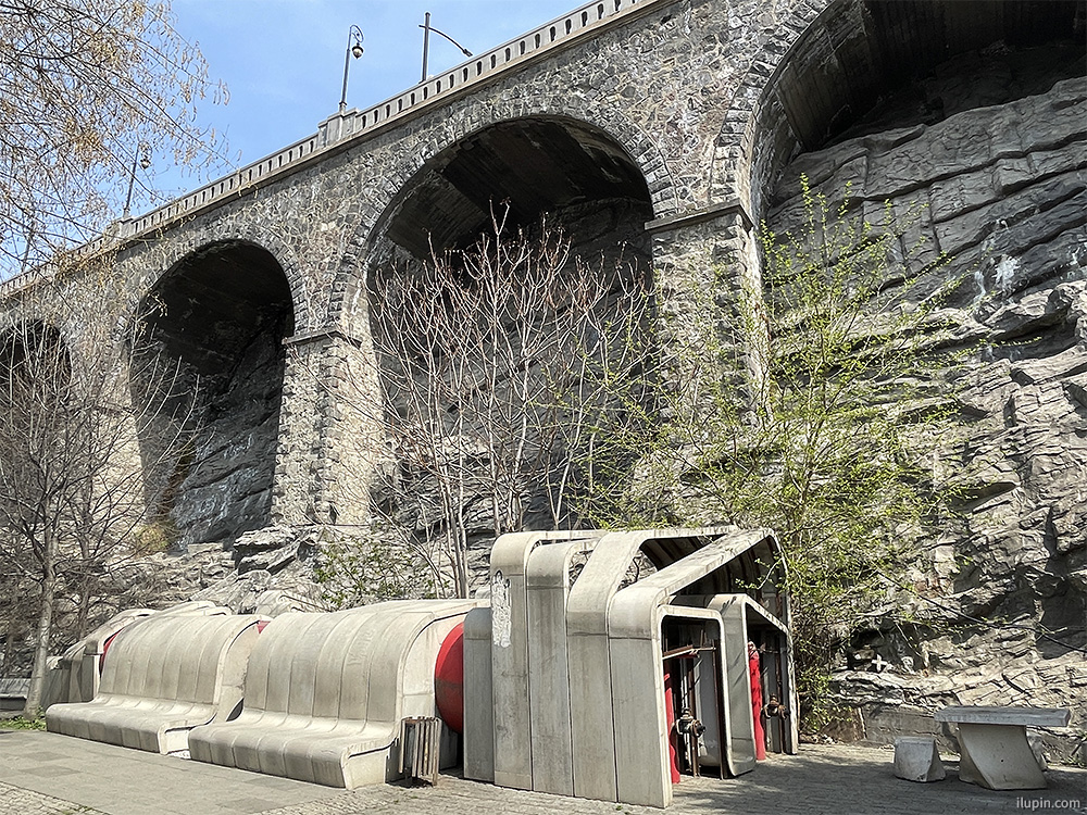 - The Kura River embankment with a view of the Ceremonial Palace (also by de Lucchi) and one of the Exhibition Hall’s horns.