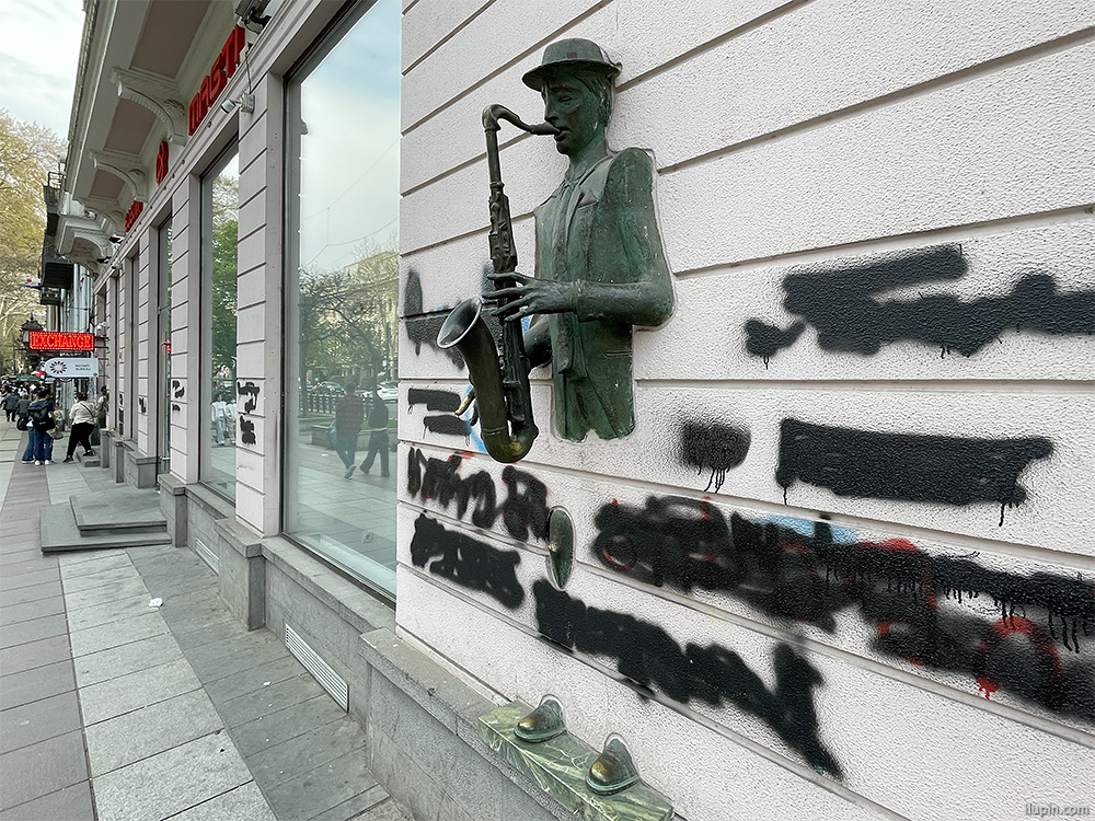 - The famous high relief “Saxophonist in the Wall” is now somewhat lost among the protest graffiti and their censorship.