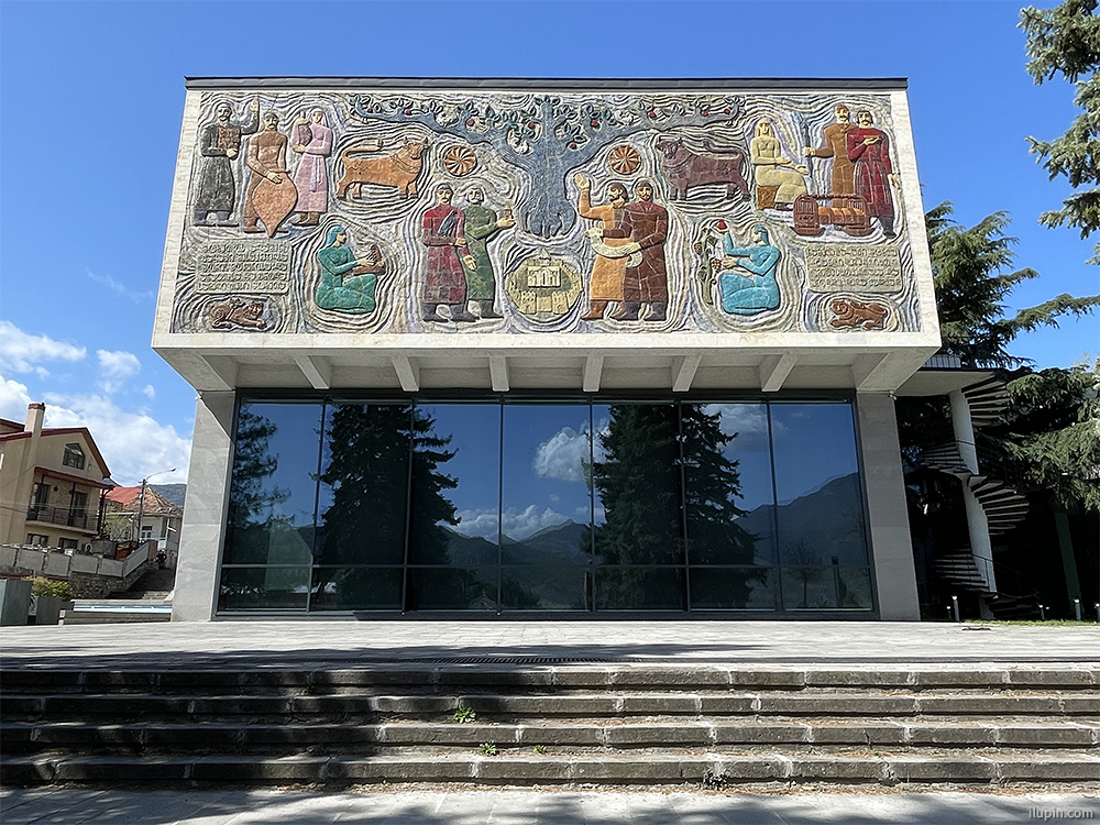 12. An archaeological museum in a reconstructed cinema building with a monumental ceramic panel from the Brezhnev era.