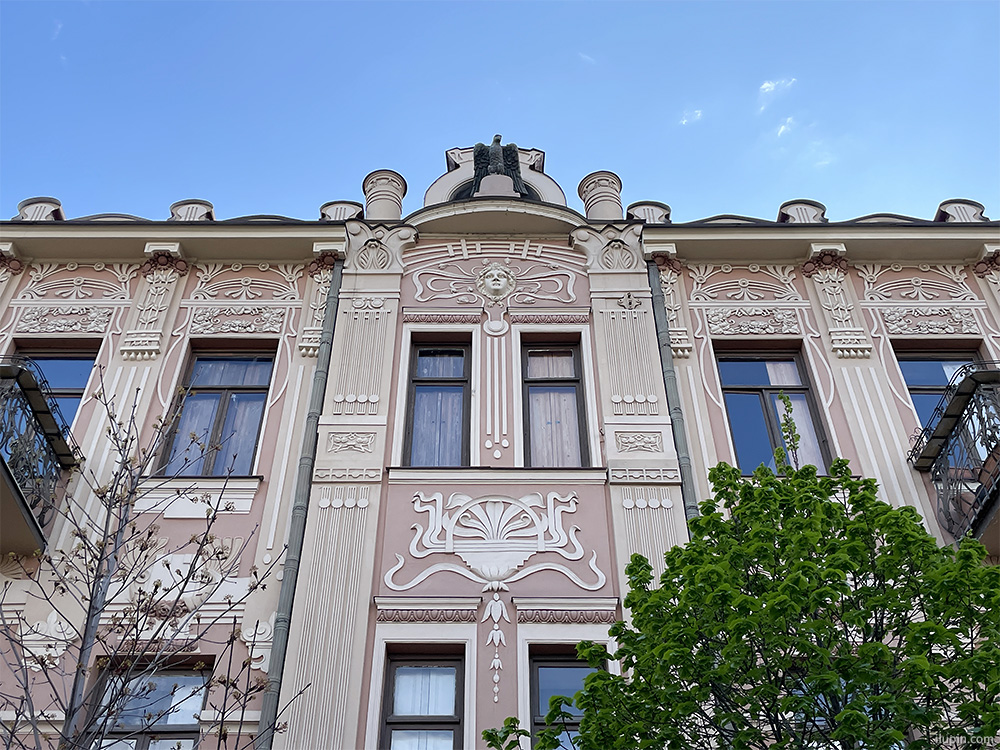 17. Chavchanidze’s house in the spirit of Tiflis Art Nouveau. There’s also an interior mural with Mihály Zichy’s illustrations for “The Knight”.